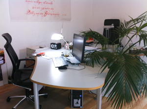 Für 130,-EUR mtl. gibt es einen großen Schreibtisch in einem Raum mit 2 Text-Frauen. Dazu kommen mtl. ca. 12 EUR für Internet und Telefonfestnetzflat. Und jeder zahlt alle 6 Wochen der Reinigungsfee 10,-EUR. Ganz umsonst, nach Absprache, gibts ein Besprechungsraum für bis zu 6 Personen dazu. Die Küche ist kostenneutral und ohne Anmeldung nutzbar.